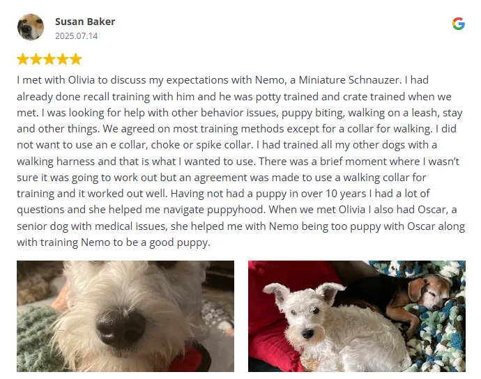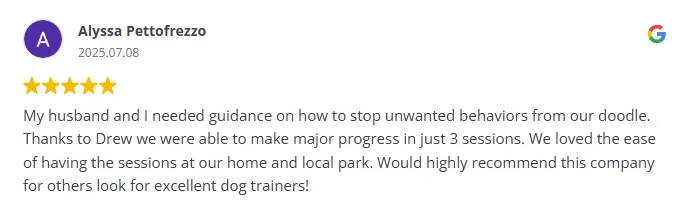 This short call helps us understand your dog’s behavior challenges, goals, and background — so we don’t waste a second once your session begins.